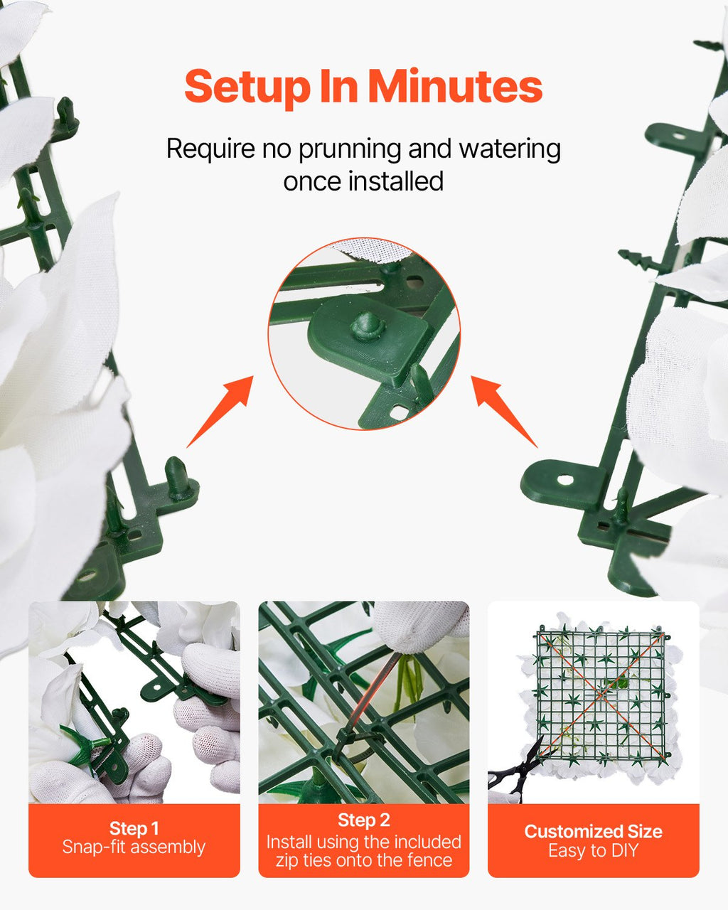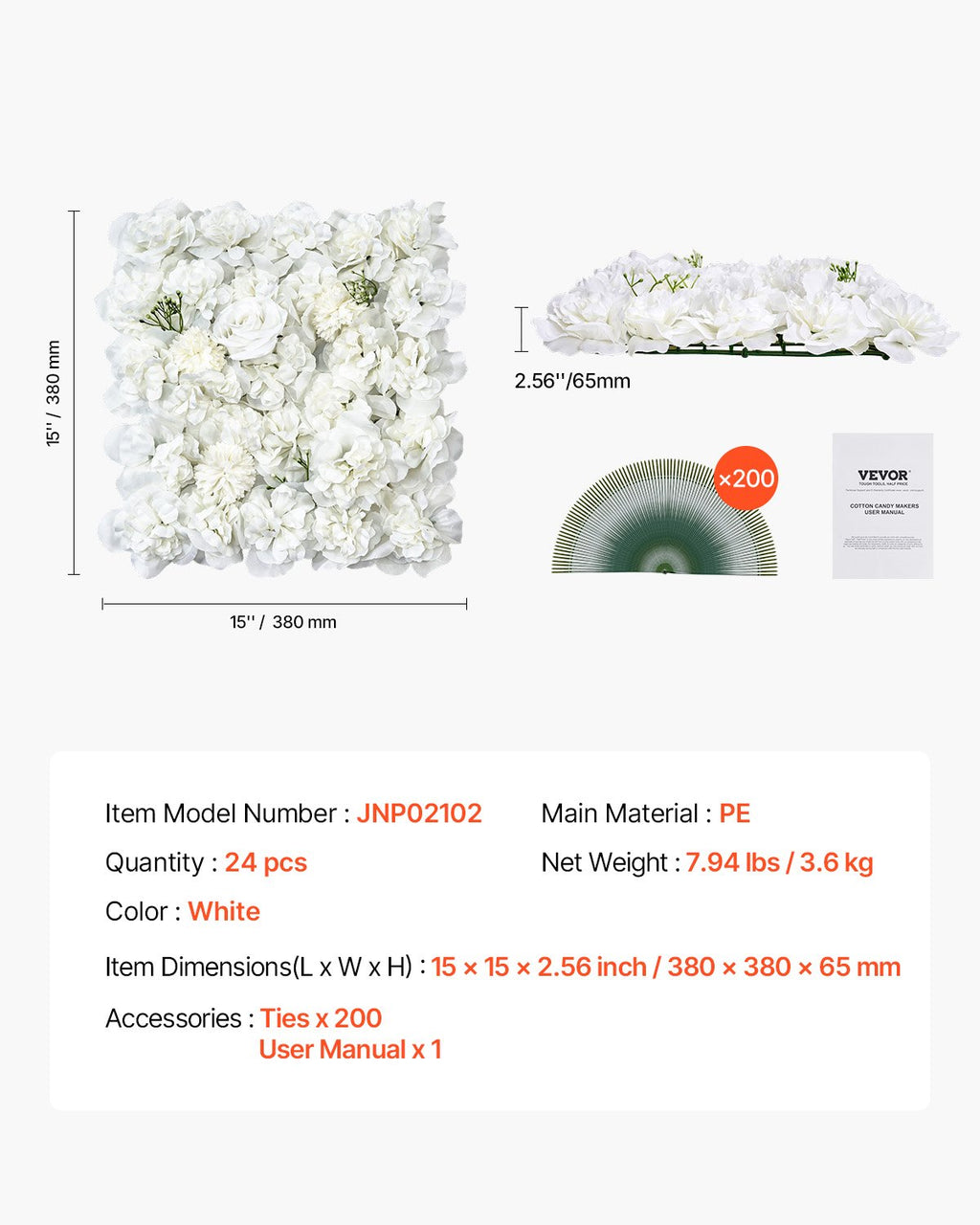 VEVOR 3D Flower Wall Panel, 24 PCS 15 x 15 inch, Artificial Floral Wall Background Mesh Backing Mat,Seamless Design&Easy Installation for Wedding Valentines Day Home Baby Party Backdrop Decor,White