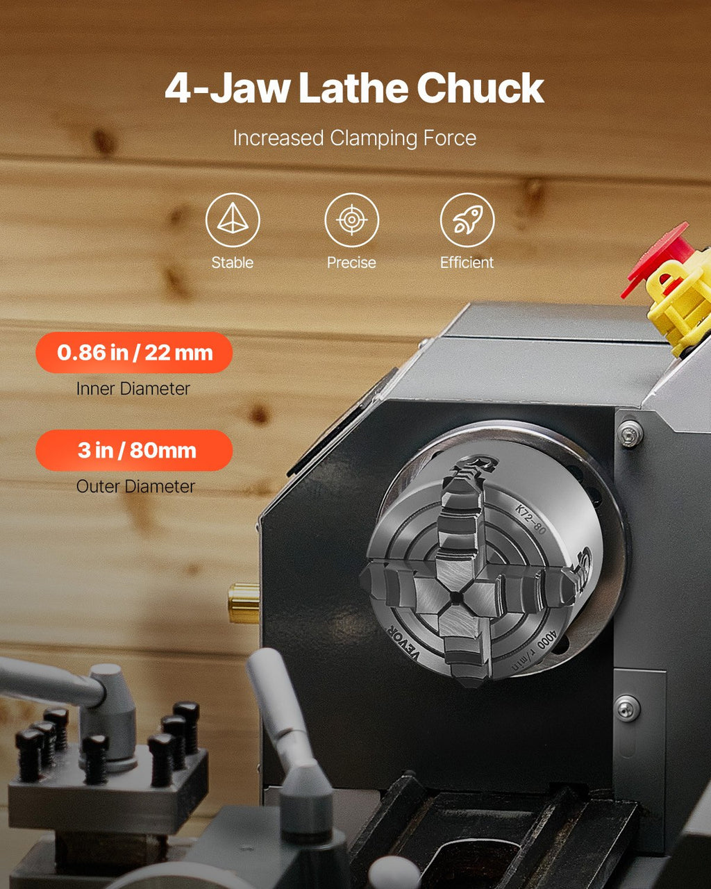 VEVOR 4-Jaw Lathe Chuck, 3 Inch 80 mm , 4-Jaw Chuck, 0.1-3.15 in 5-80 mm Clamping Range with T-key Fixing Screws Reversible Jaws, HT300 Material, Internal External for Wood Metal Lathe