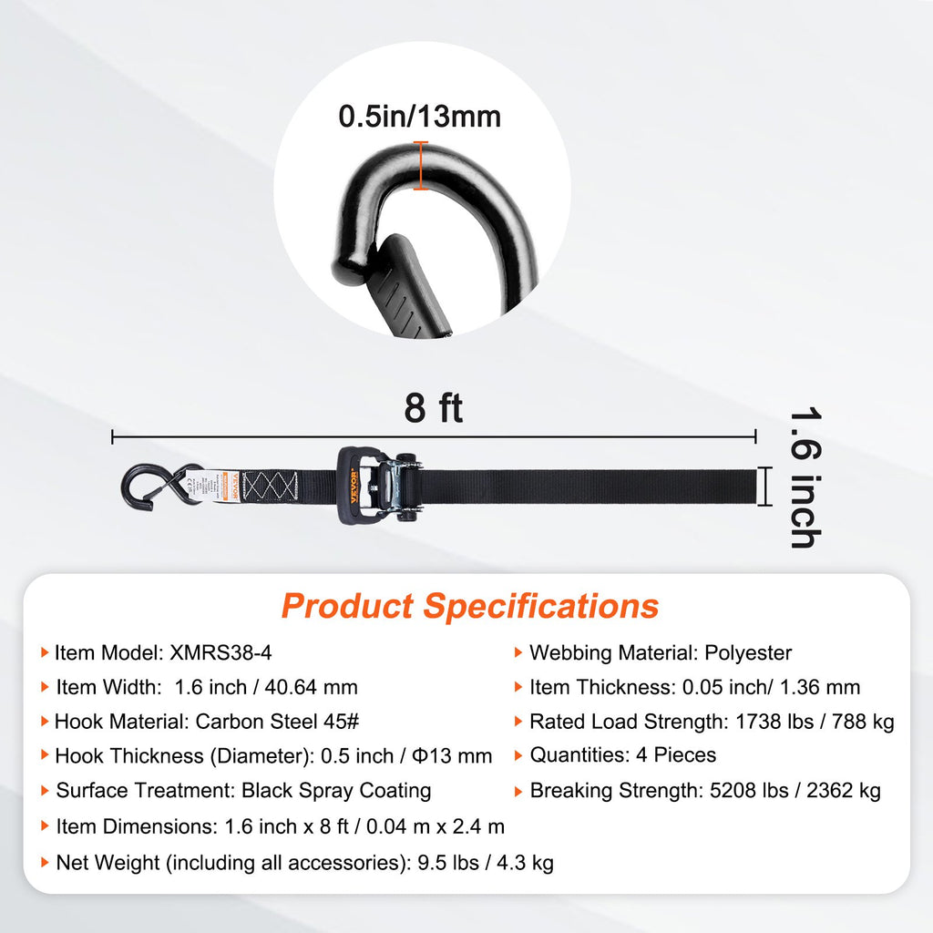 VEVOR 4 Pack Ratchet Tie Down Straps 5208 lbs 1.6