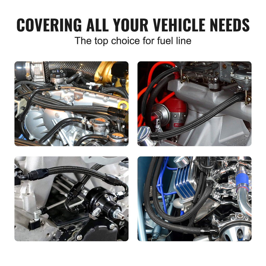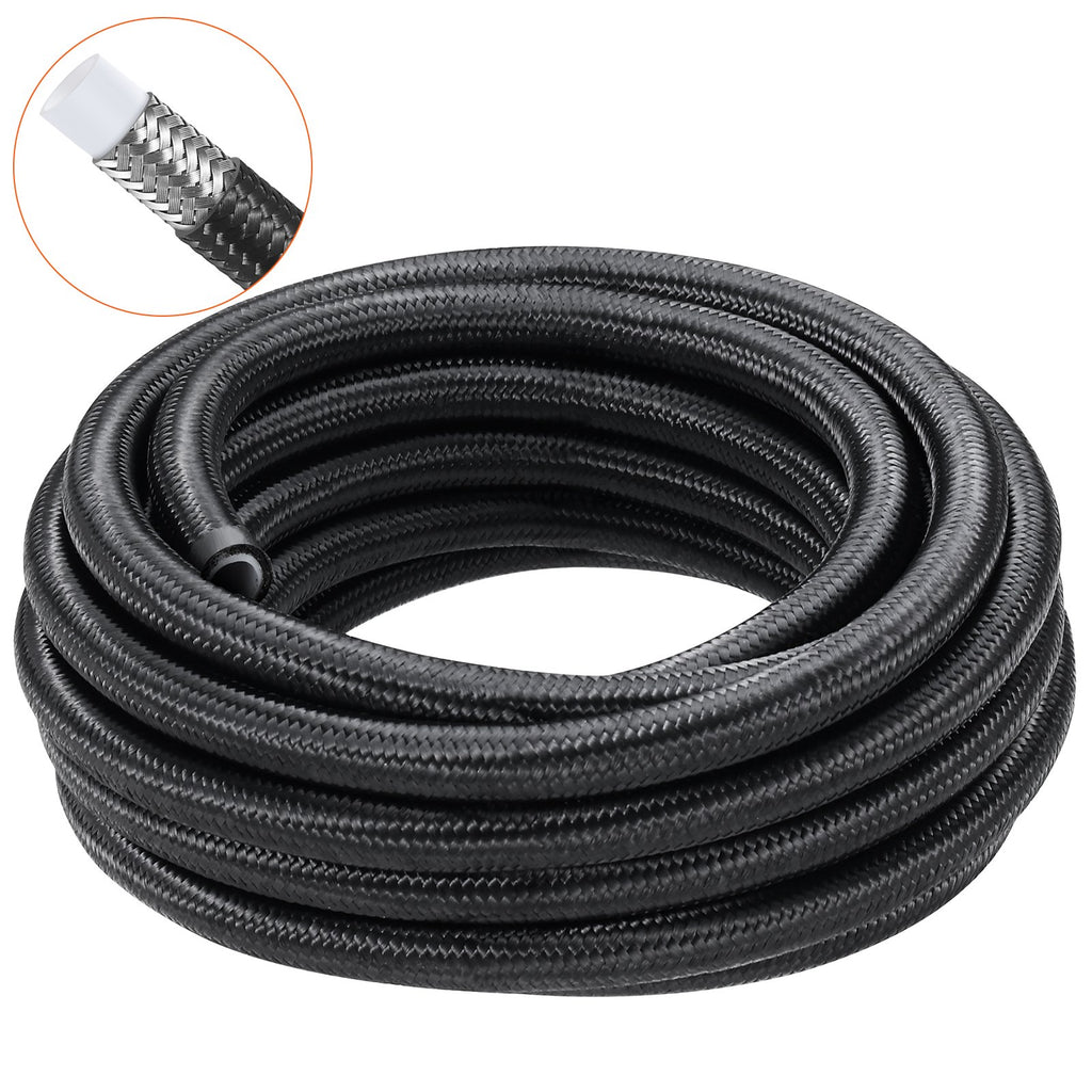 VEVOR 6AN Fuel Line Kit, 7.62 m Fuel Hose Kit, Nylon Stainless Steel Braided PTFE Fuel Line Kit, E85/Oil/Gas/Diesel Hose End Fitting Kit, with 15 PCS Swivel Fitting Adapter Kit, Black