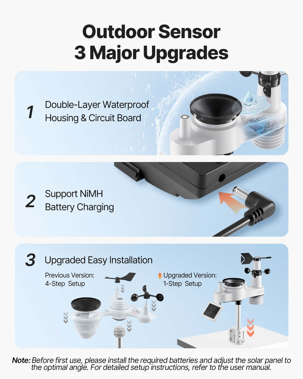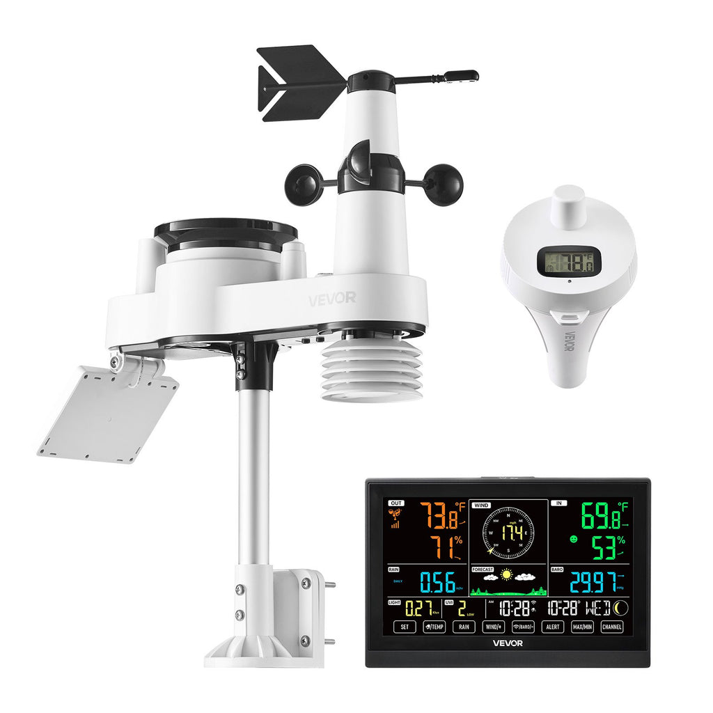 VEVOR 7-in-1 Wi-Fi Weather Station with APP, 190.5 mm Display, Wireless Solar Powered Outdoor Sensor, with Pool Thermometer, Rain Gauge, Indoor Outdoor for Weather Forecast Wind Speed Pool Temperature