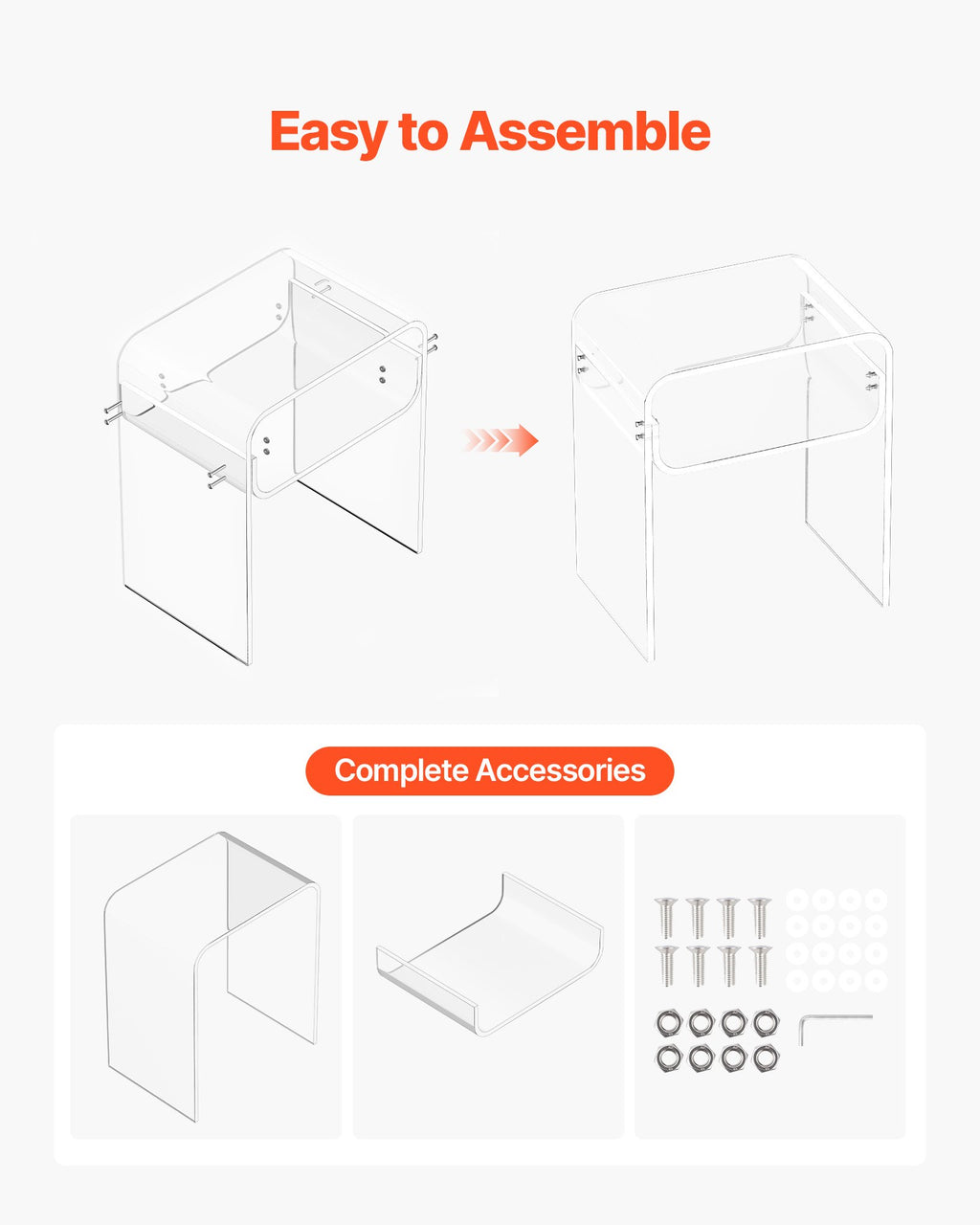 VEVOR Acrylic Side Table, 2 Tiers Clear Bedside Table with Storage Shelf, Modern Rectangle Acrylic End Desk, Transparent Thick Nightstand for Bedroom, Living Room, Study, 30 x 40 x 50 cm Clear