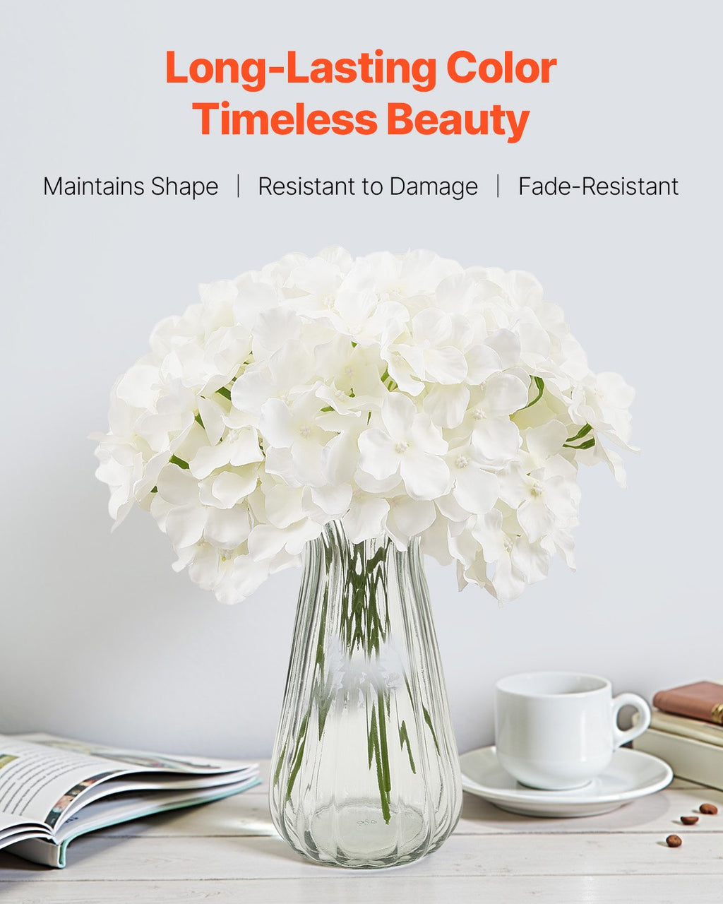 VEVOR Artificial Flowers, 105 pcs Real Looking White Silk Fake Hydrangea Bulk, White Faux Bridal Shower with Stems for DIY Wedding Bouquets, Home Centerpieces Arrangements, Party Tables Decorations