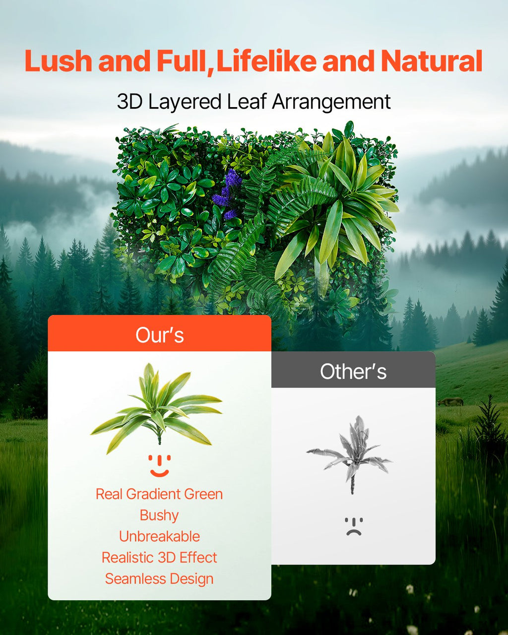 VEVOR Artificial Grass Wall Panels, 8 PCS 20 x 20 inch, 3D Combination Greenery Boxwood Panel for Indoor Outdoor Green Decor & Ivy Fence Covering, Privacy Backdrop Wall Hedge Screen for Garden