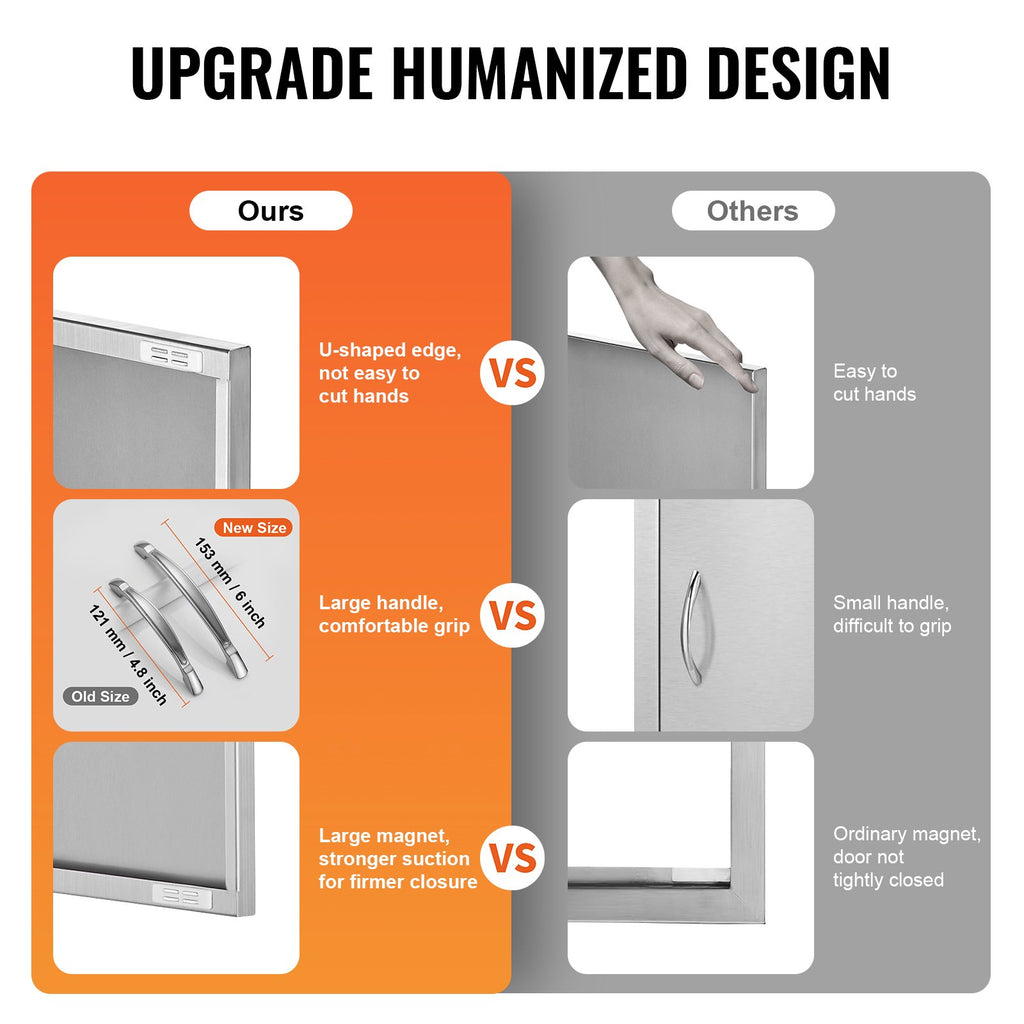 VEVOR BBQ Access Door, 432x610 mm Single Outdoor Kitchen Door, Stainless Steel Flush Mount Door, Wall Vertical Door with Handle, for BBQ Island, Grilling Station, Outside Cabinet