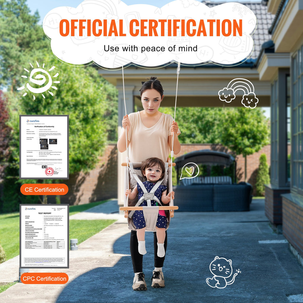 VEVOR Canvas Hammock Swing, 3 Modes Baby Swing Indoor and Outdoor with 5-Point Harness, and Tree Straps, 150lbs Weight Capacity, Integrated Cushion, Wooden Hanging Swing Seat for Baby to Toddler