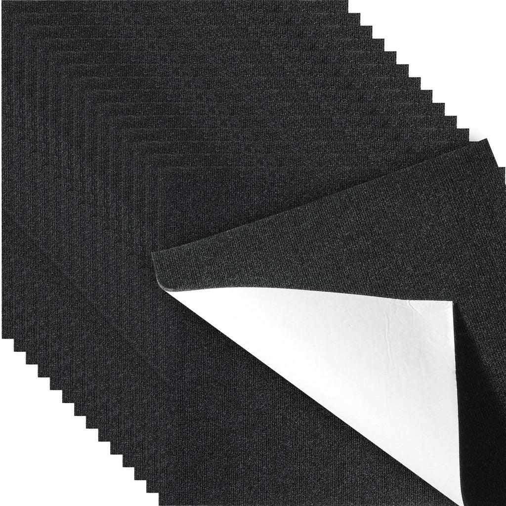 VEVOR Carpet Tiles Peel and Stick, 24” x 24” Squares Self Adhesive Carpet Floor Tile, Soft Padded Carpet Tiles, Easy Install DIY for Bedroom Living Room Indoor Outdoor 15Tiles, Carbon Black