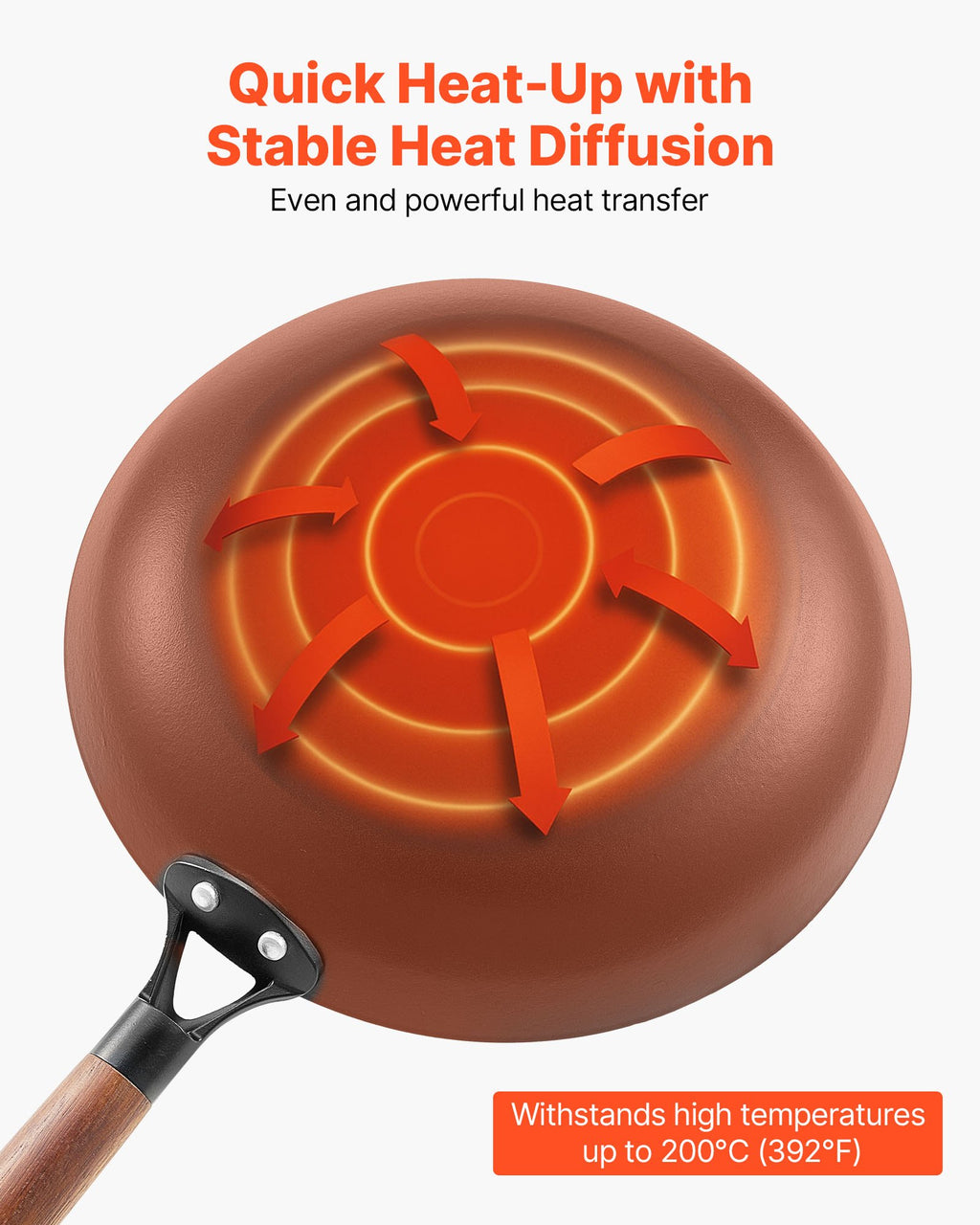 VEVOR Cast Iron Skillet, 3-Piece Frying Pan Set 205, 265, 310 mm , Nonstick Skillets with Detachable Wood Handle, Pre-Seasoned Chef's Pan, Kitchen Cookware for Gas, Electrical, and Induction, Black