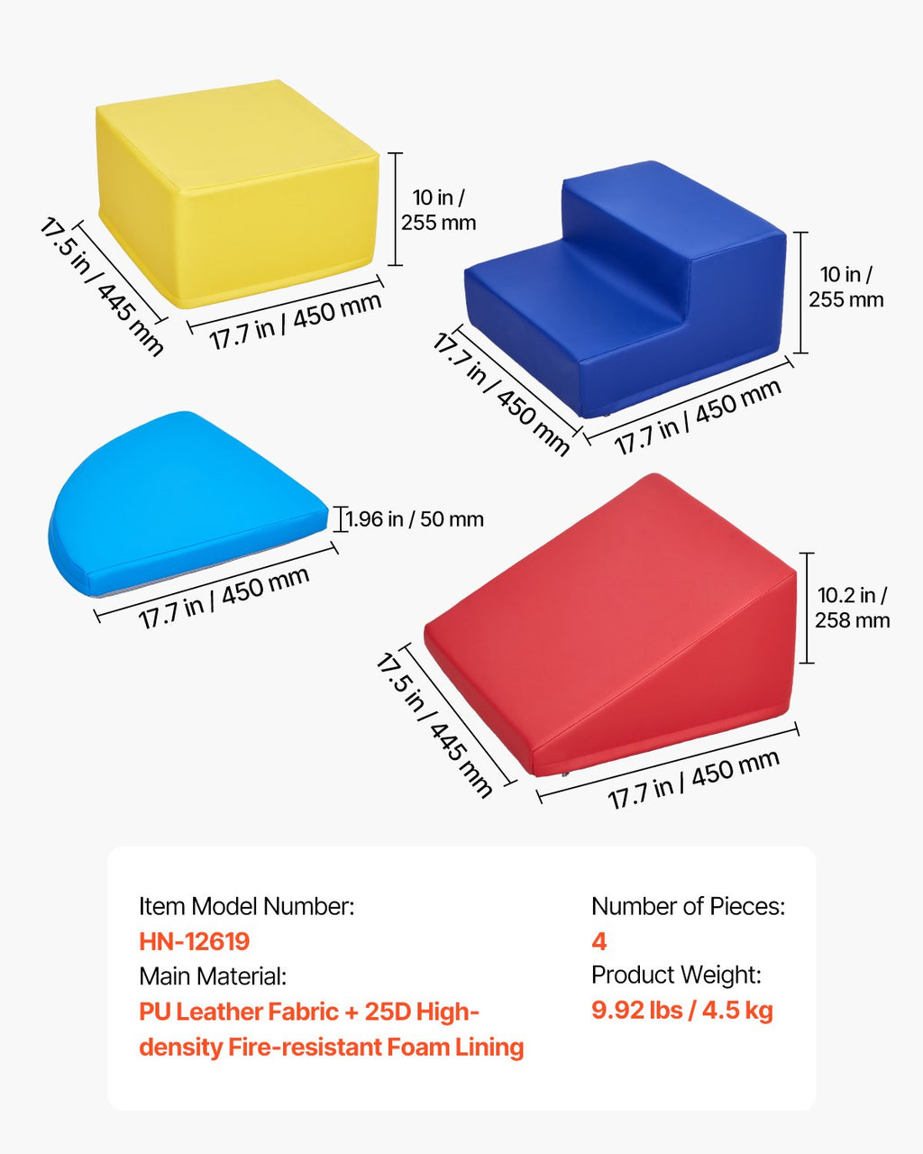 VEVOR Climbing Toys, 4-Piece Set, Foam Climbing Toys for Toddlers 6 Months to 3 Years Old, PU Leather Climbing Blocks, Indoor Climb and Crawl Activity Playset for Crawling & Sliding, Easy to Clean