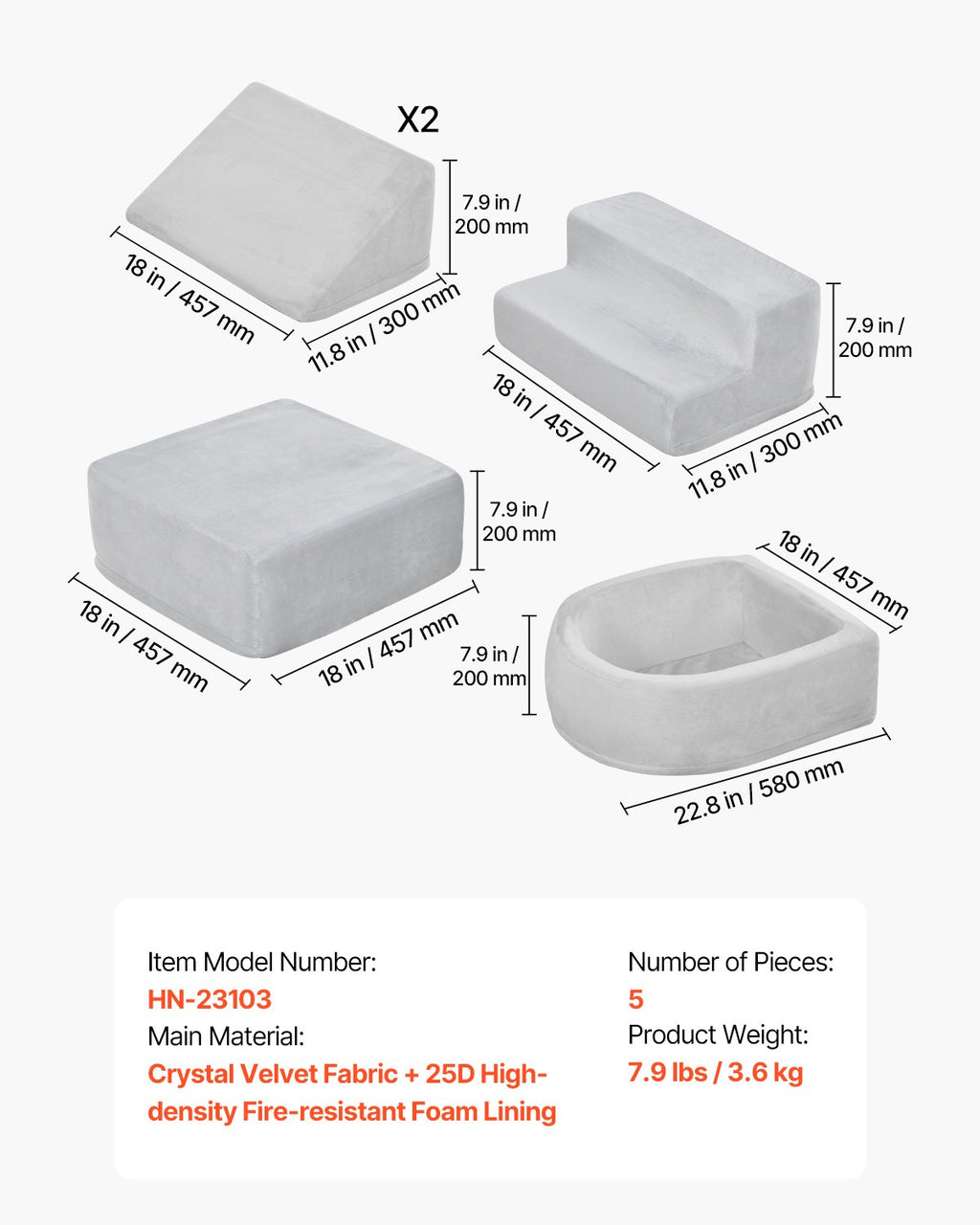 VEVOR Climbing Toys, 5-Piece Set, Foam Climbing Blocks for Toddlers 6 Months to 3 Years, Baby Climbing Blocks with Ball Pit Balls Not Included , Indoor Climb and Crawl Activity Playset for Crawling