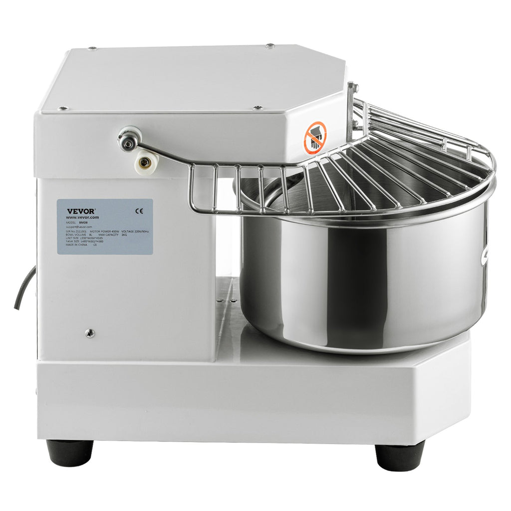 VEVOR Commercial Dough Food Mixer, 8L Large Capacity Stainless Steel Mixer with Bowel, Hook, Shield, Reset Button, 450W Tilt-Head Kitchen Dough Mixers for Cake, Cream, Egg Fluid, Fillings