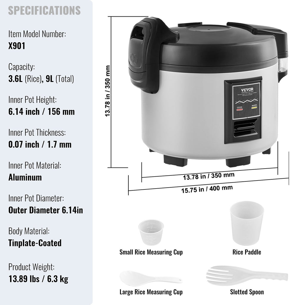 VEVOR Commercial Rice Cooker, 45-Cup Rice Cooker, 9 Liter Large Rice Cooker and Warmer with Nonstick Inner Pot, Fast Cooking and 12-Hour Keep Warm, with Rice Cup and Paddle, for Restaurant