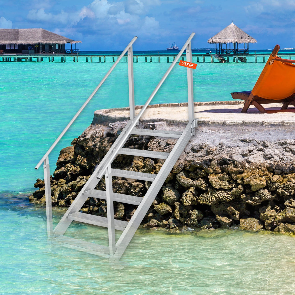 VEVOR Dock Ladder, 1.09 m-1.29 m Adjustable Height, 227 kg Load Capacity, Aluminum Alloy 6 Steps Pontoon Boat Ladder with Dual Handrails & Nonslip Mat, Ideal for Ship/Lake/Pool/Marine Boarding