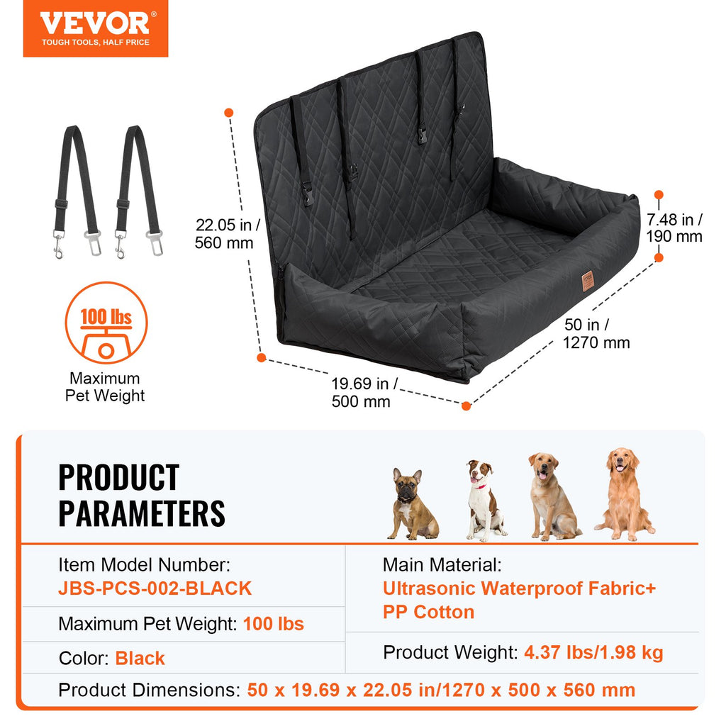 VEVOR Dog Car Seat, Waterproof Dog Booster Seat for Car, Pet Car Seat with Clip-On Safety Leash, PP Cotton Filling, Dog Car Bed for Medium & Large Dog up to 45.4 kg, Black