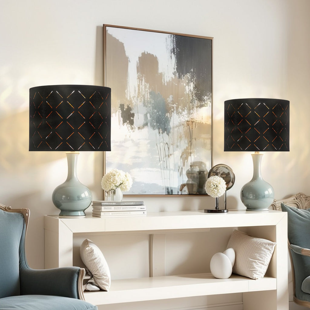 VEVOR Drum Lamp Shade 2 Set, 33 cm Top x 33 cm Bottom x 25 cm High, Medium Drum Lampshade with Harp, Replacement Lamp Shade for Table Lamps Floor Lamps Pendant Lights, Black Diamond Hollow Design