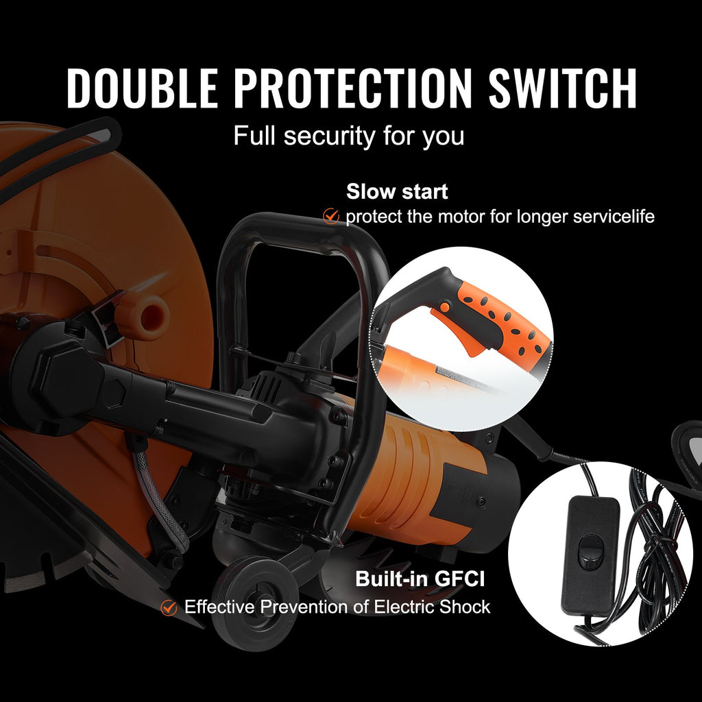 VEVOR Electric Concrete Saw, 14 in, 2000 W Motor Circular Saw Cutter with Max. 5 in Adjustable Cutting Depth, Wet Disk Saw Cutter Includes Water Line, Pump and Blade, for Stone, Brick