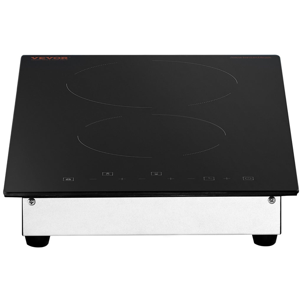 VEVOR Electric Cooktop, 12 inch 2 Burners Built-in Electric Stove Top, 3000W Ceramic Radiant Cooktop with Glass Panel, Touch Control, Timer, Child Lock, 9 Heat Level, Residual Heat Indicator, 220-240V
