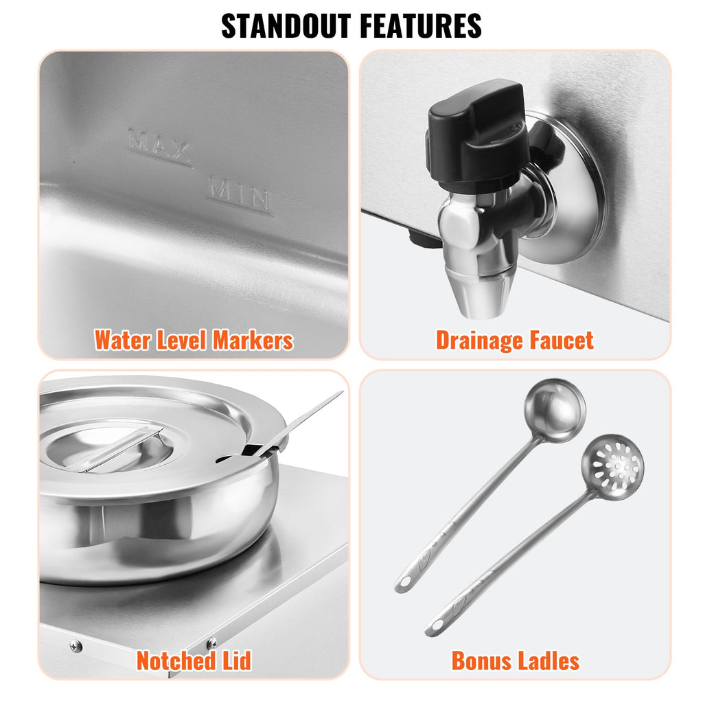 VEVOR Electric Soup Warmer, Three 7.4QT Stainless Steel Round Pot, 1200W Commercial Food Warmer, 30 - 85℃ Adjustable Temp, Bain Marie with Anti-Dry Burn and Reset Button, for Restaurant, Buffet