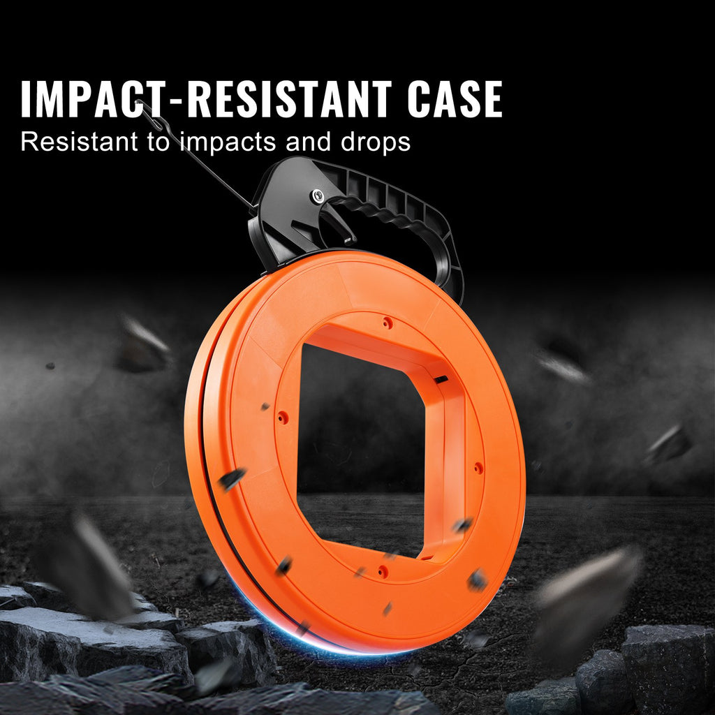 VEVOR Fish Tape, 36.58 m, 3 mm, Steel Wire Puller with Optimized Housing and Handle, Easy-to-Use Cable Puller Tool, Flexible Wire Fishing Tools for Walls and Electrical Conduit, Non-Conductive