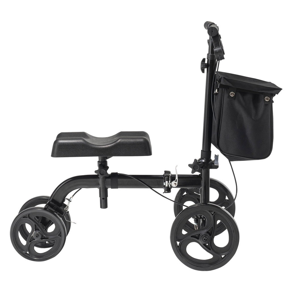 VEVOR Folding Knee Scooter, Carbon Steel Steerable Knee Walker with Height-Adjustable Handlebar & Knee Pad, All-Terrain Solid Wheels, Dual Brakes, Leg Recovery Scooter for Broken Ankle Foot Injuries