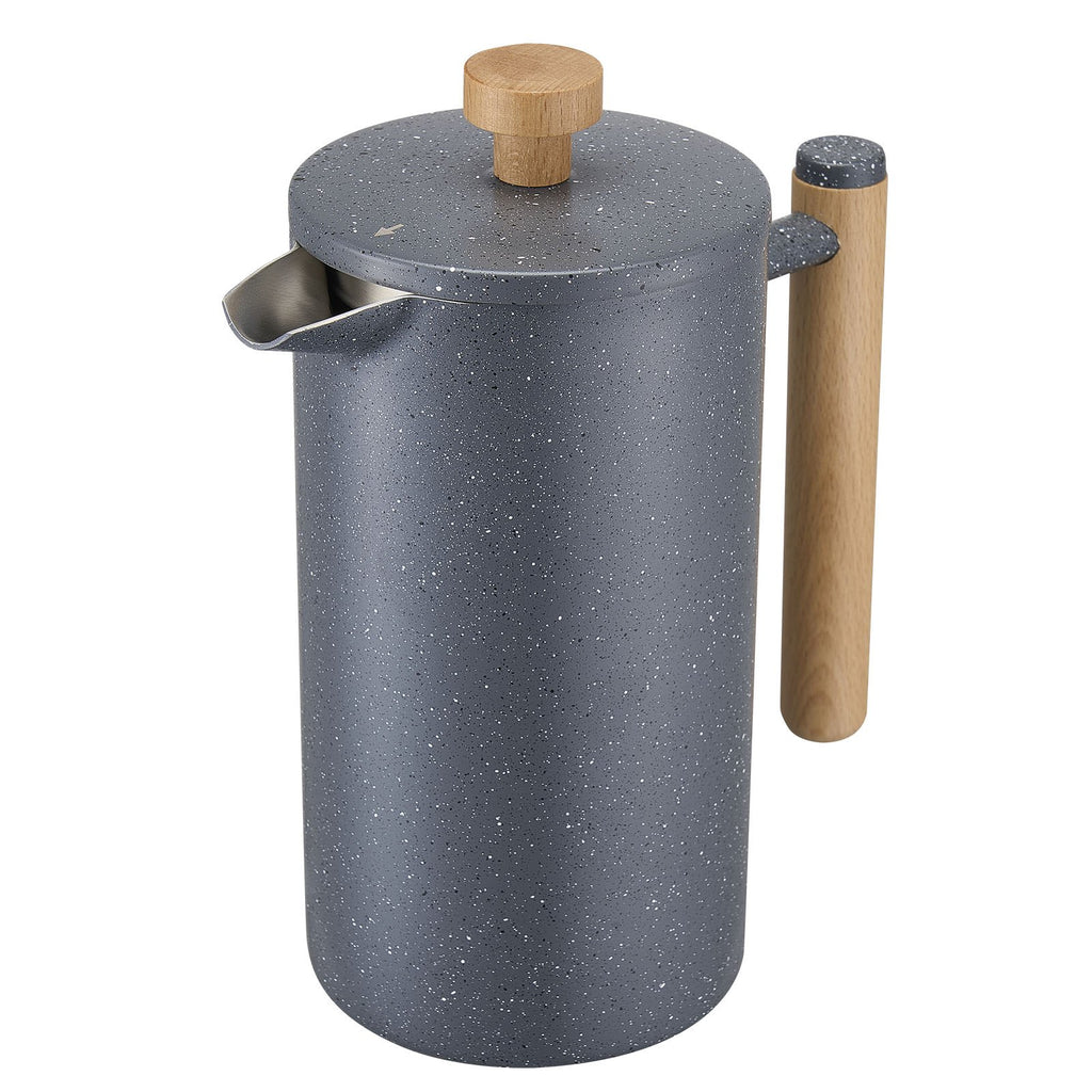 More than coffee-brew tea, cold brew, or frothed milk with this 34 oz / 1L black stainless steel coffee press, ideal for home or office. The matte speckled finish and wooden handle fit any modern décor