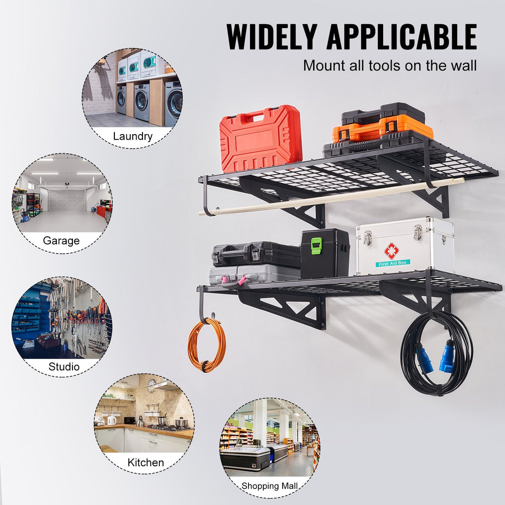Still struggling to find a place for your tools or dealing with clutter everywhere? VEVOR garage hanging shelves are perfect for organizing screwdrivers, handheld power tools, batteries, and chargers. Create a clean and tidy workspace, making you feel more comfortable and productive.