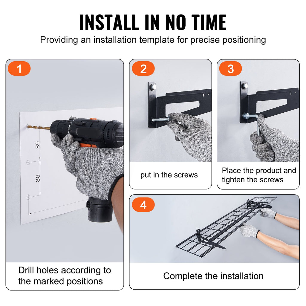 The garage wall shelves employ a modular assembly design. Simply place the hole positioning paper, install the brackets, tighten the screws, and you're good to go. The lower tool rack can be separated from other organizers according to your specific needs.