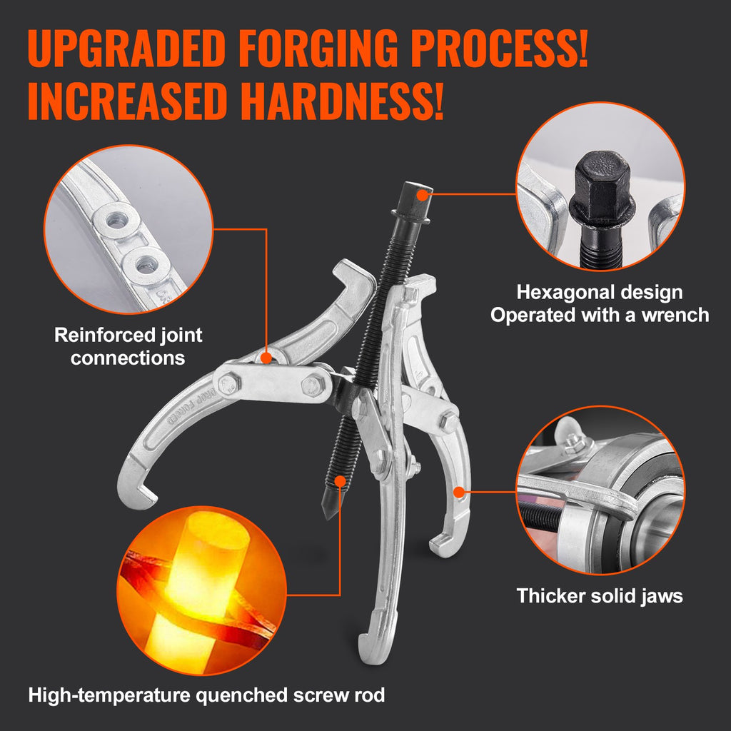 This screw rod has been quenched and forged at high temperatures to make it incredibly durable. The jaws have undergone precision processing to ensure a strong grip. Made from tough industrial grade 45# steel, our gear puller set boasts a rust and corrosion-resistant coating for added longevity.
