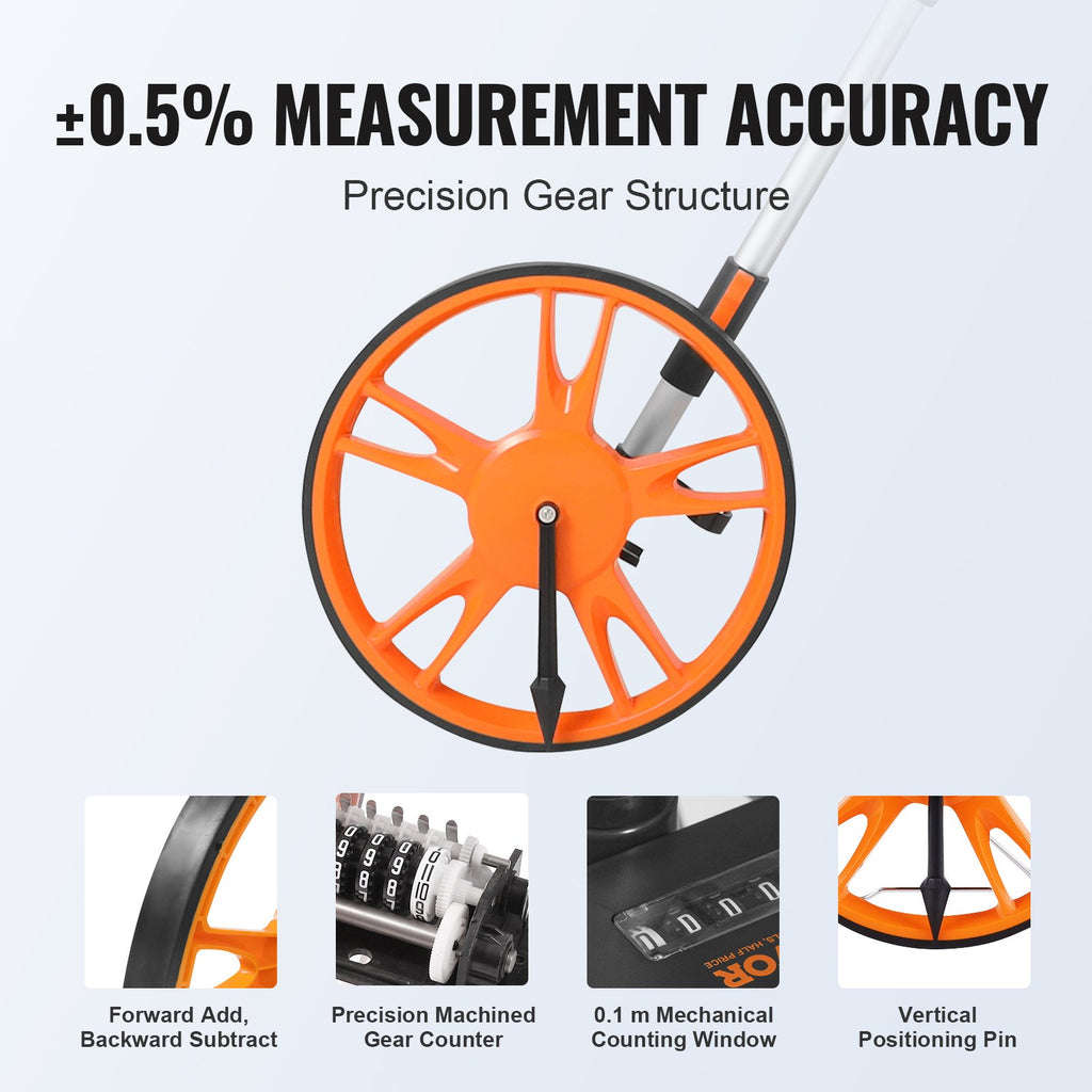 VEVOR Measuring Wheel 12.5” Road Runner Distance Telescoping Handle w/ Back Bag