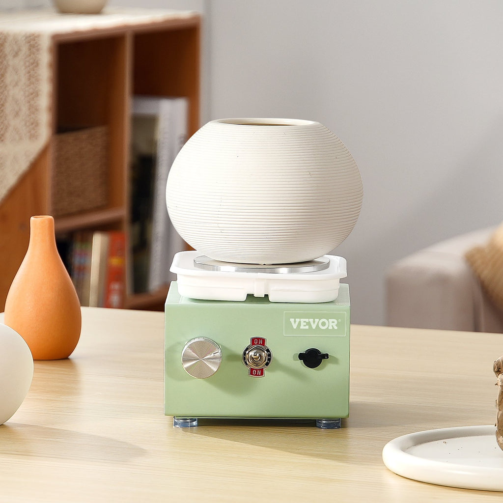 VEVOR Mini Pottery Wheel, 0-320RPM Adjustable Speed Detachable Basin Forming Machine, 2.56in/3.94in 2 Turntables Electric Ceramic Wheel Machine, 18pcs Accessories, for Art Craft Work Home DIY, Green