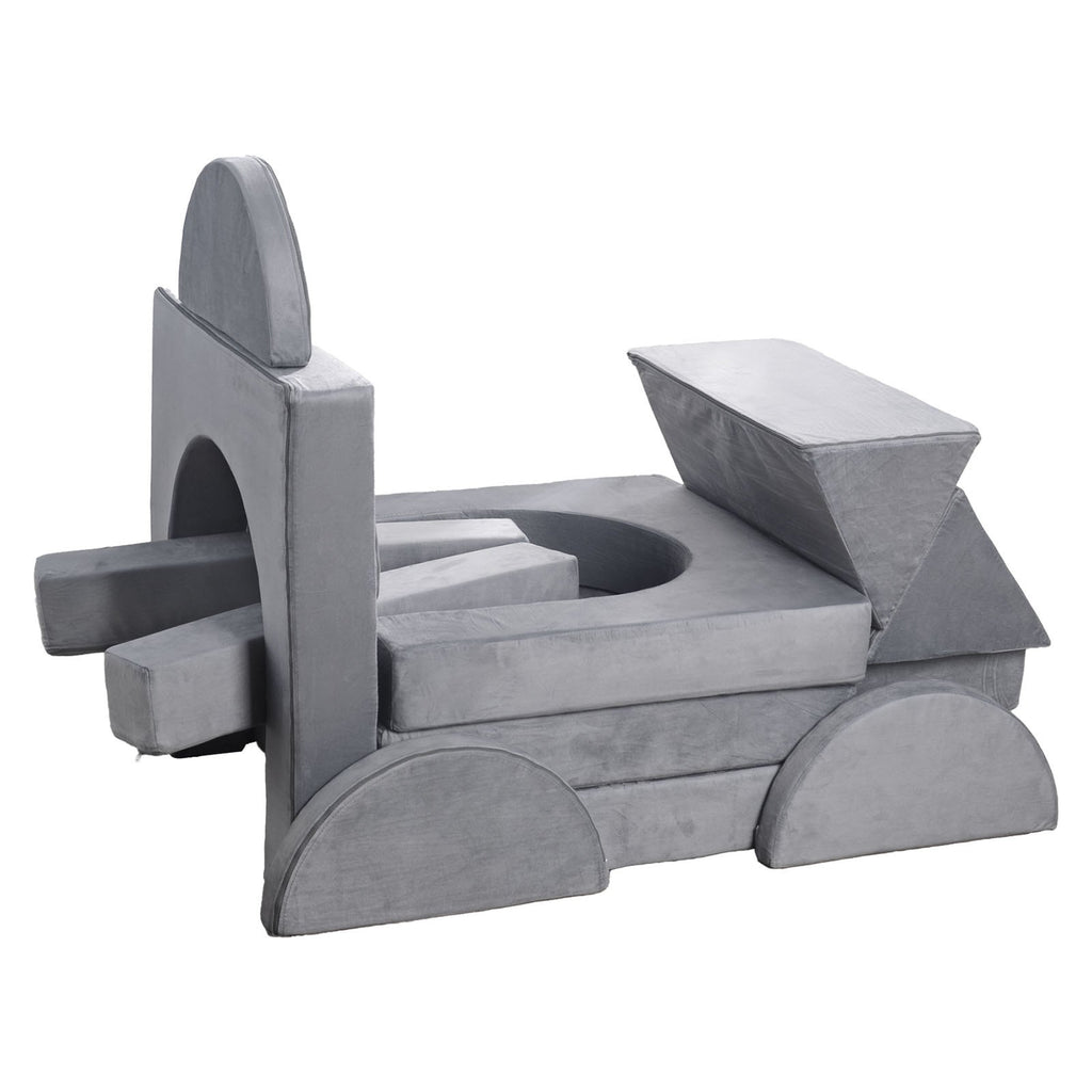 VEVOR Modular Kids Play Couch, Sectional Toddler Sofa with Armrests, 28D Sponge & Short Pile, Convertible Kids Modular Couch DIY Creative Combination for Playroom, Bedroom, Living Room, 14 Pcs, Gray