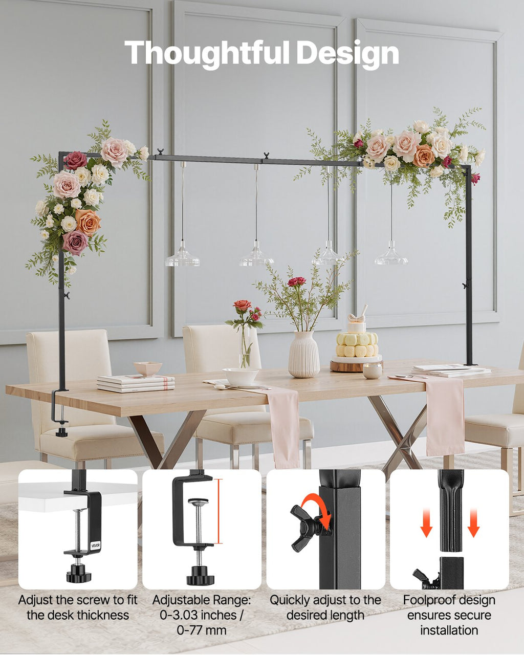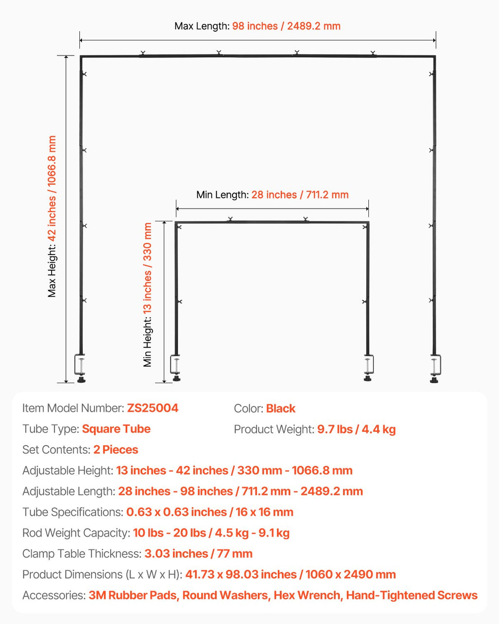 VEVOR Over The Table Rod Stand with Clamps, 13"-42" Tall & 28"-98" Length Adjustable, 2 Packs Table Arch Stand, Tabletop Balloon Arch Frame for Wedding Birthday Party Christmas Decorations, Black