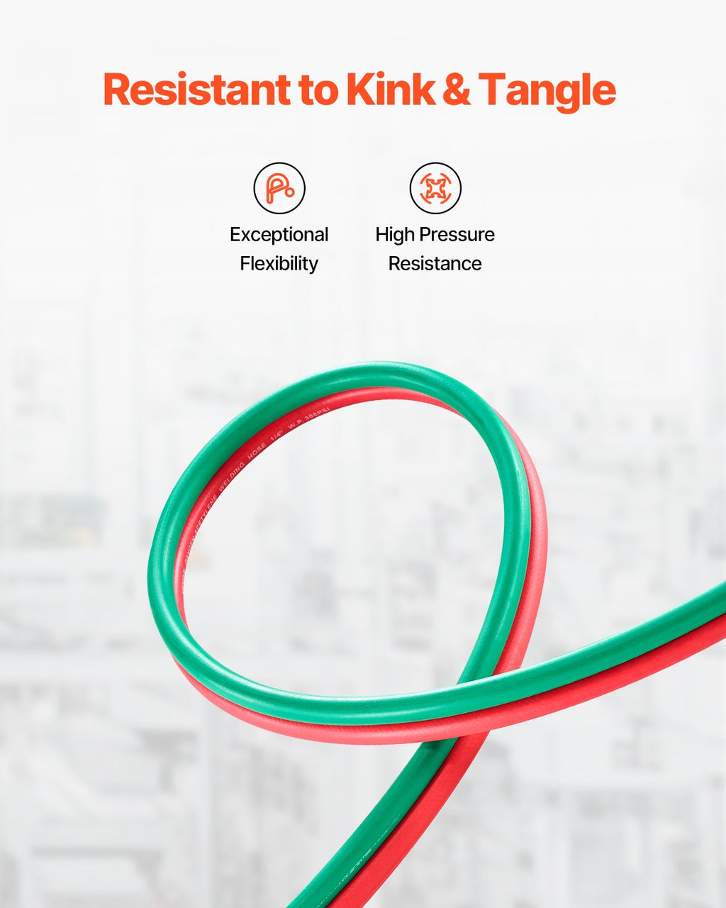 VEVOR Oxygen Acetylene Hose, 1/4-Inch x 50FT Oxy Acetylene Hose with 9/16"-18 LH/RH B Fittings, R Grade Welding Torch Twin Hose with 300PSI Maximum Working Pressure for Cutting Soldering Brazing