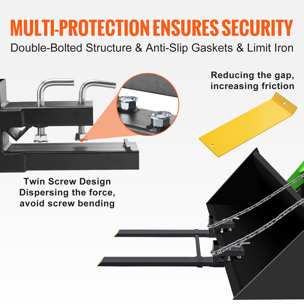 VEVOR Pallet Forks, 907 kg Clamp on Pallet Forks, 1490 mm Total Length Heavy Duty Pallet Forks with Adjustable Stabilizer bar, Tractor Bucket Forks for Tractor Attachments, Skid Steer, Loader Bucket
