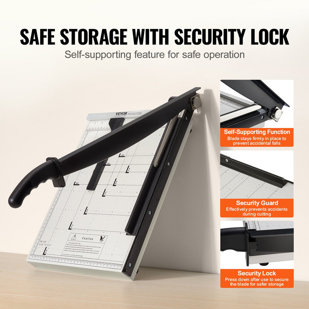 VEVOR Paper Cutter, Guillotine Trimmer, 381 mm Cut Length, 16 Sheets Capacity, Heavy Duty Guillotine Paper Cutter with Guard Rail/Blade Lock for Cardstock/Cardboard, Paper Trimmer for Home Office