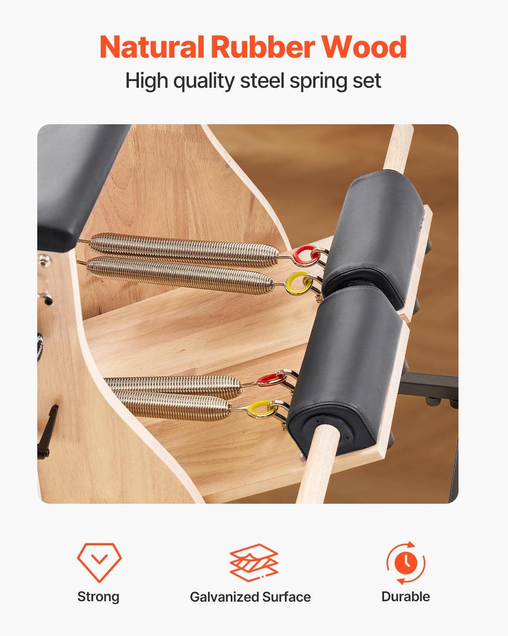 VEVOR Pilates Chair, Split-Pedal Stability Combo Chairs with Handles, Rubber Wood Frame Yoga Fitness Trainer, Exercise Reformer, Pilates Resistance-Workout Equipment, for Home Gym Studio Workout
