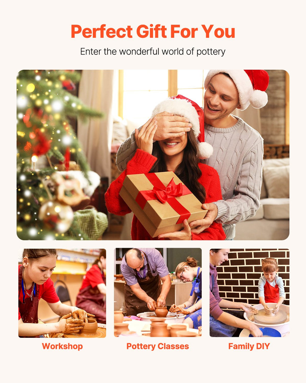 VEVOR Pottery Wheel, 28 cm Ceramic Wheel Forming Machine, 60-300 RPM Speed Adjustable Foot Pedal, Adjustable Lift Leg, Detachable Basin, Complete Tool Accessory Kit for Work Art Craft DIY, White