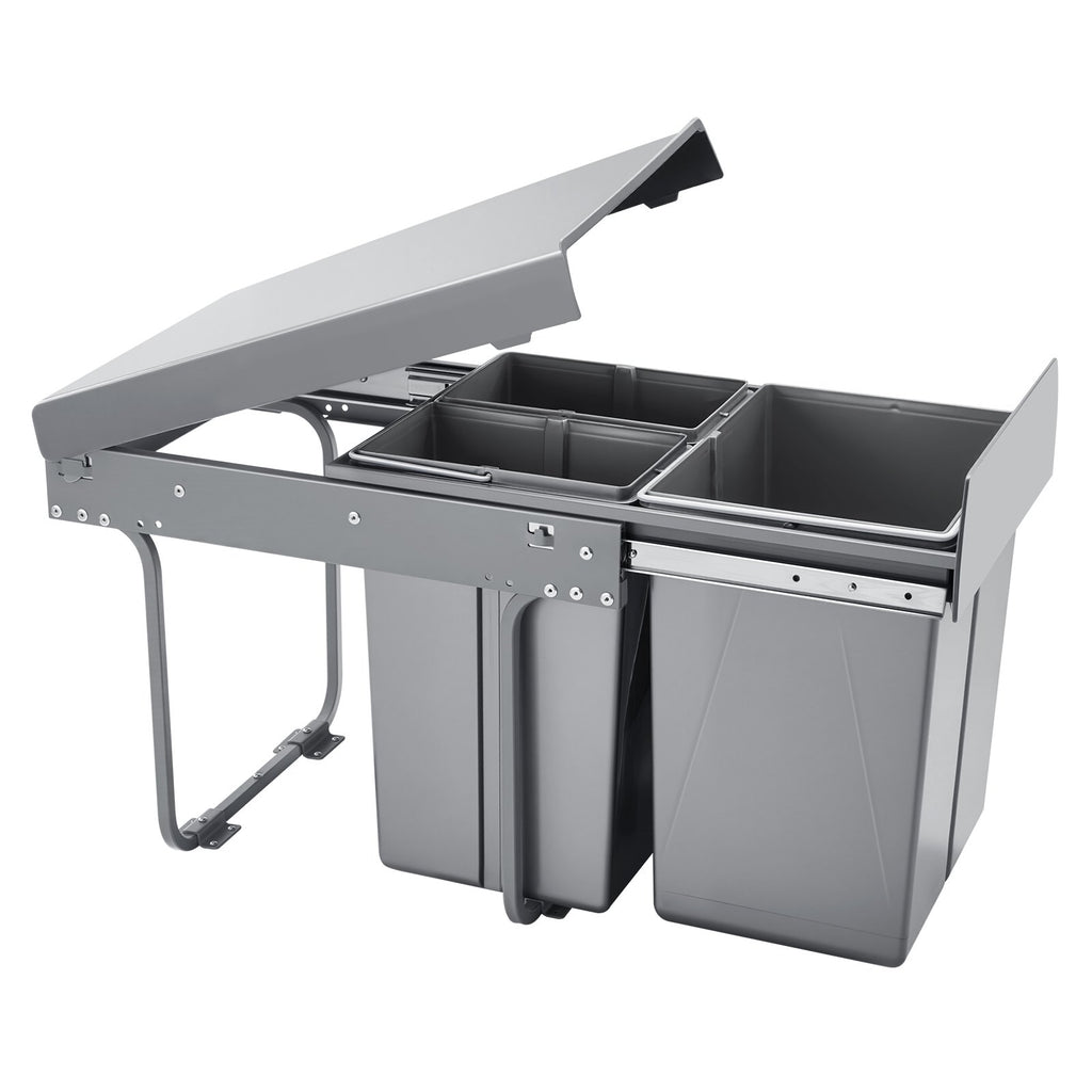 VEVOR Pullout Trash Can for Kitchen Cabinets, 20+10+10L Double Under Sink Garbage Waste Recycling Bin, Under Mount Waste Container, with Heavy Duty Metal Full Extension Sliding System and Handle