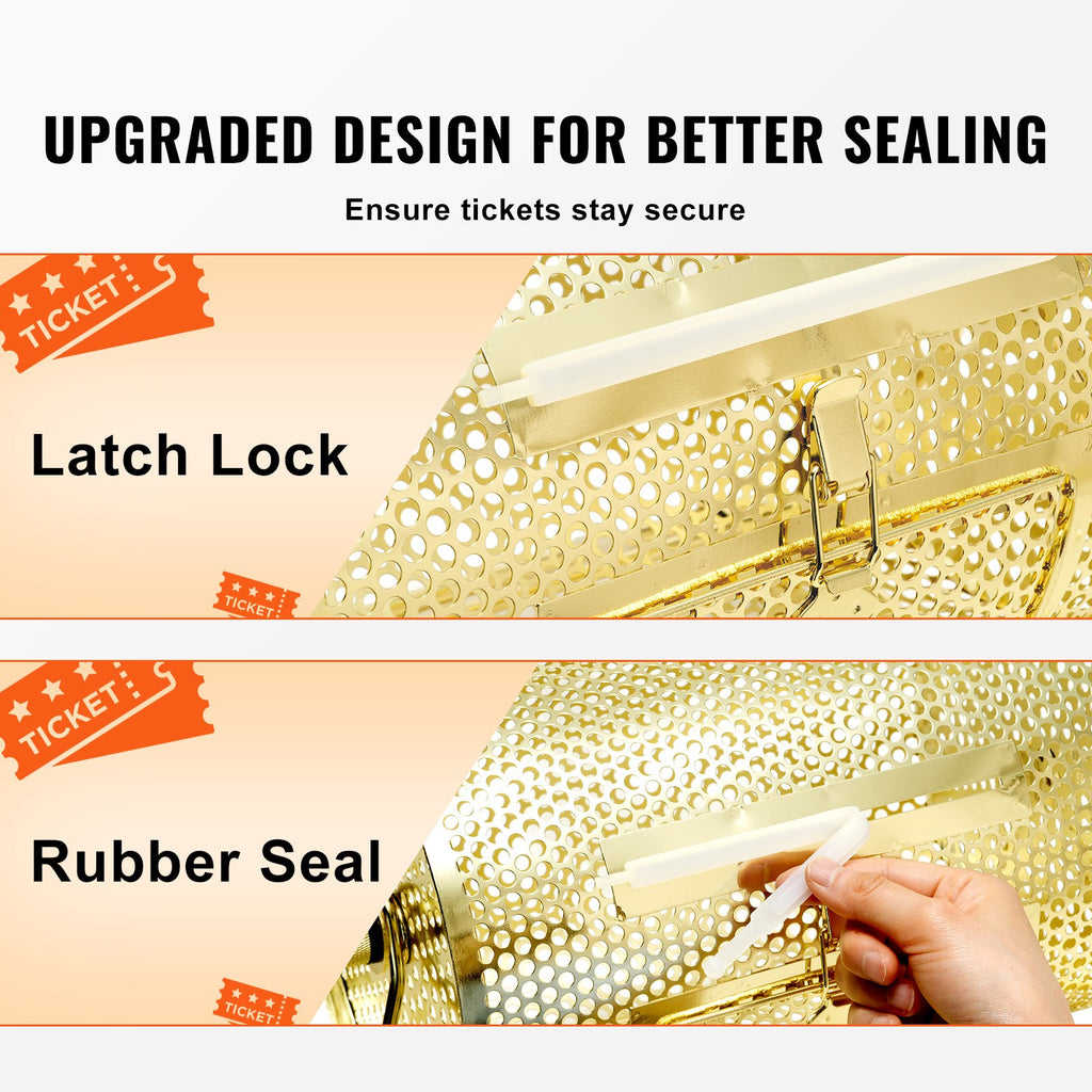 VEVOR Raffle Drum, 11.6 x Ø7.48 inch Brass Plated Raffle Ticket Spinning Cage, Holds 2500 Tickets or 100 Ping Pong Balls, Metal Lottery Spinning Drawing with Wooden Turning Handle, for Bingo Ballot Pa