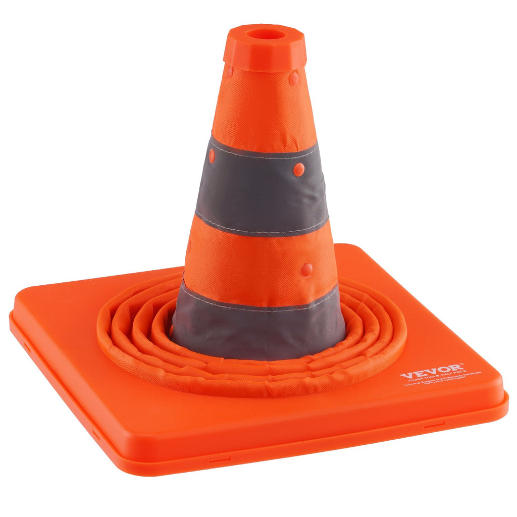 VEVOR Safety Cones, 4 Pack 18 inch Collapsible Traffic Cones, Construction Cones with Reflective Collars, Wide Base and A Storage Bag, for Traffic Control, Driving Training, Parking Lots
