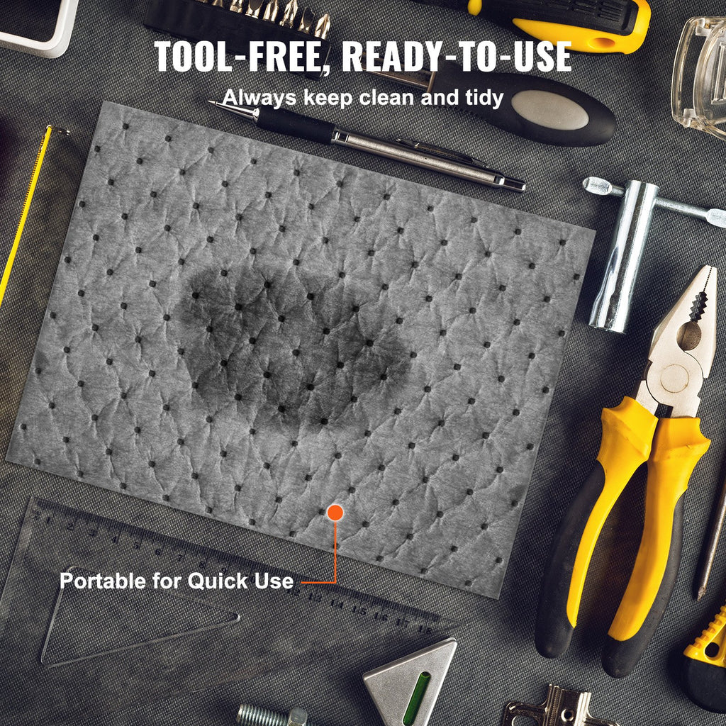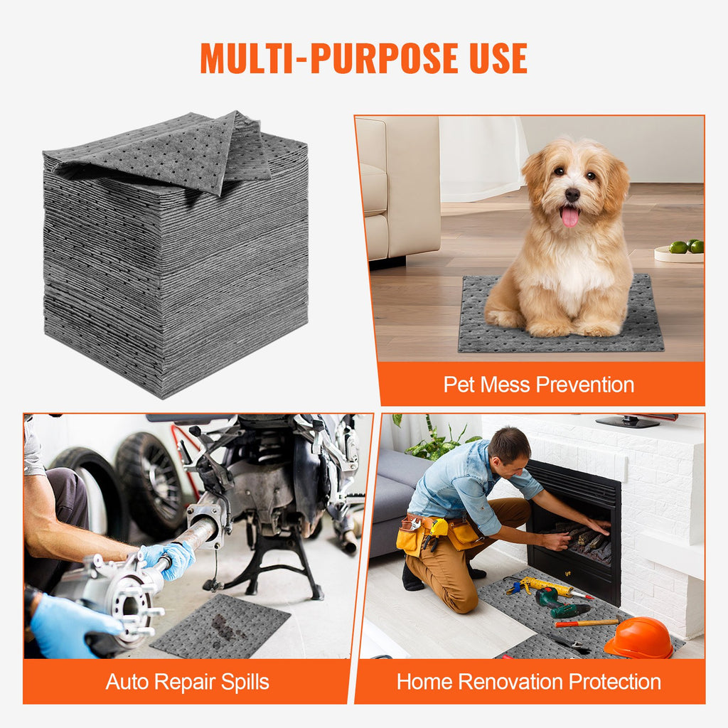 VEVOR Spill Absorbent Pads, Universal Absorbing Mat Absorbs up 12 Gal, 13" L x10" W Polypropylene Absorbent Pad for Oil, Water and Other Liquids, Pack of 100