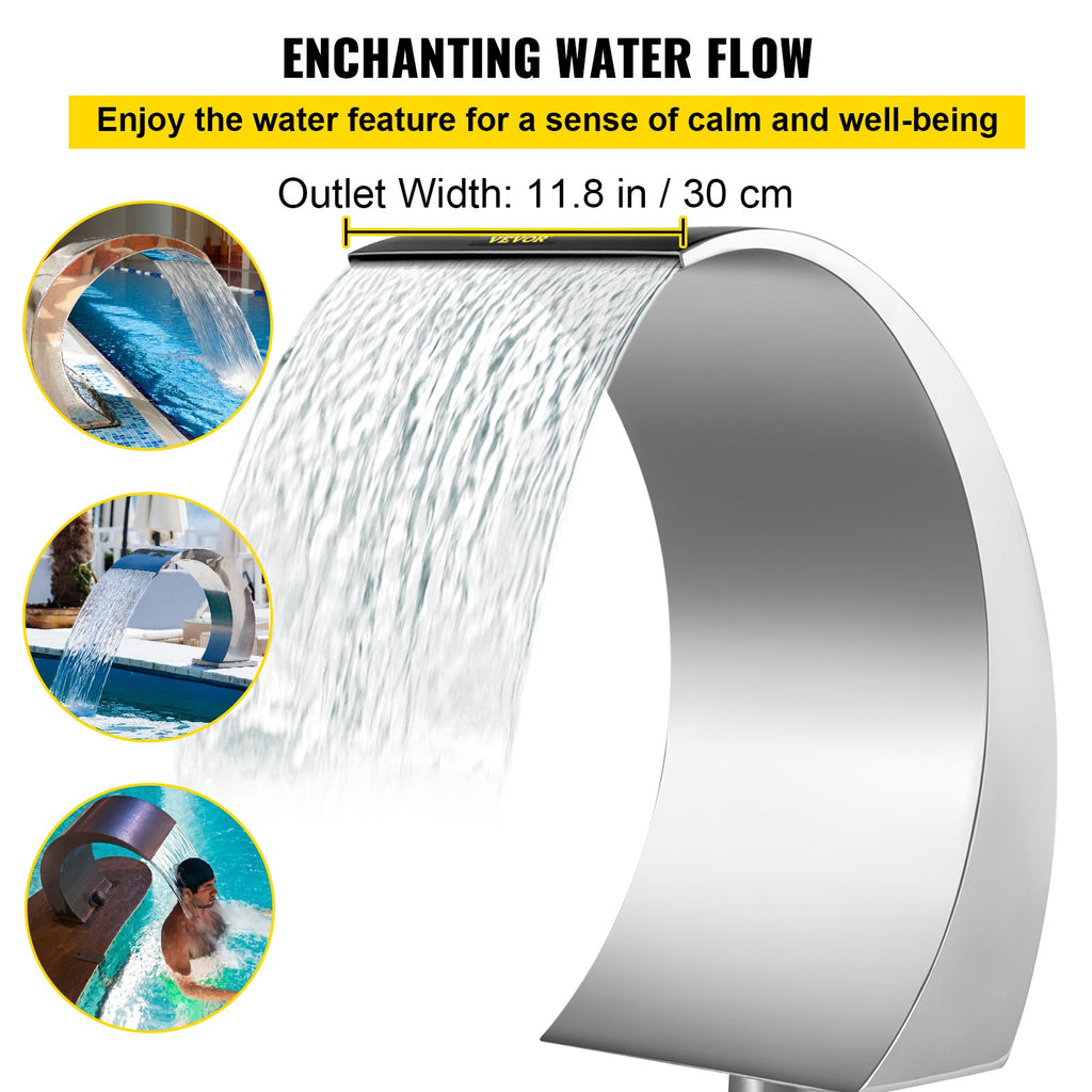 VEVOR Stainless Steel Pool Fountain 17.7 x 11.8 x 23.6 inches Pool Fountain Silver Pool Fountains for In Ground Pools Garden Outdoor Waterfalls Sheer Descent Pond Water Feature