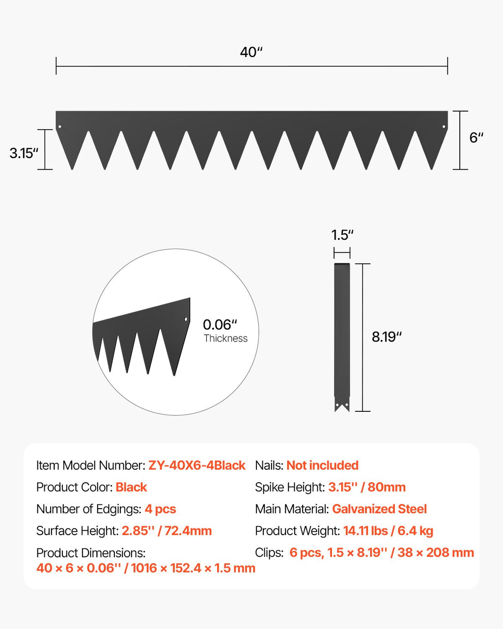 VEVOR Steel Landscape Edging, 4 Packs 40 x 6 in Rust-Resistant Metal Landscape Edging, Bendable Garden Edging Border, Heavy Duty Lawn Edging, Easy-to-Install, Flower Bed Yard Pathway Divider Black