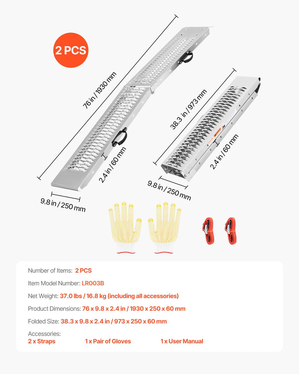 VEVOR Steel Ramps, 1000 lbs, 2Pcs Heavy-duty Ramps with Wider Ramp Surface, Universal Stable Loading Ramp with Handles, Fit for ATV, UTV, Motorcycle, Electric Bicycle, etc.