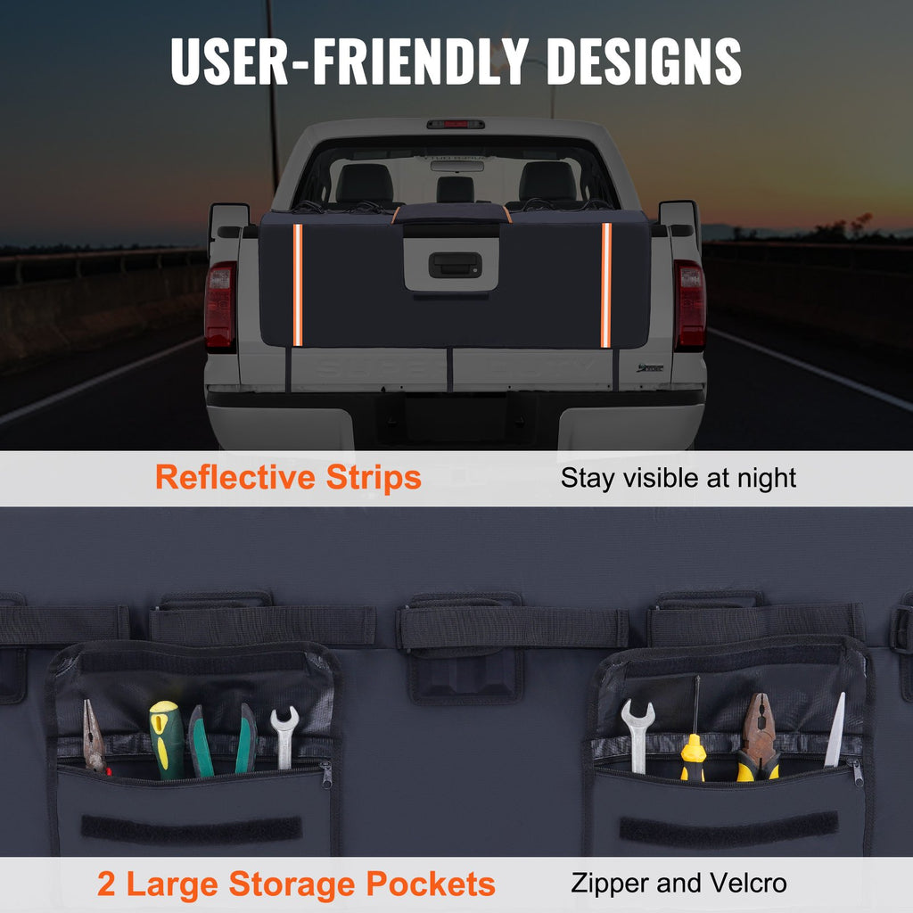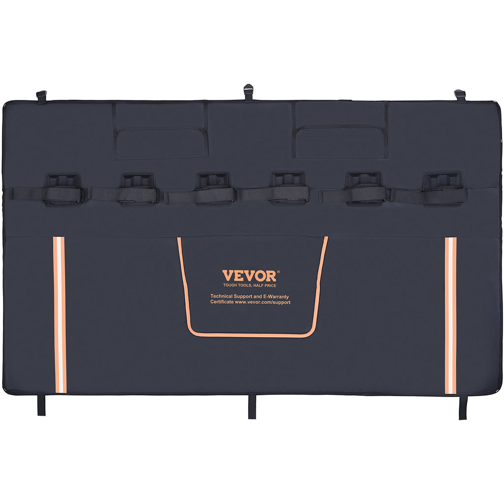 VEVOR Tailgate Bike Pad, 62" Truck Tailgate Pad Carry 6 Mountain Bikes, Upgraded Grooves Tailgate Protection Pad with Reflective Strips and Tool Pockets, with Camera Opening for Most Pickup Trucks