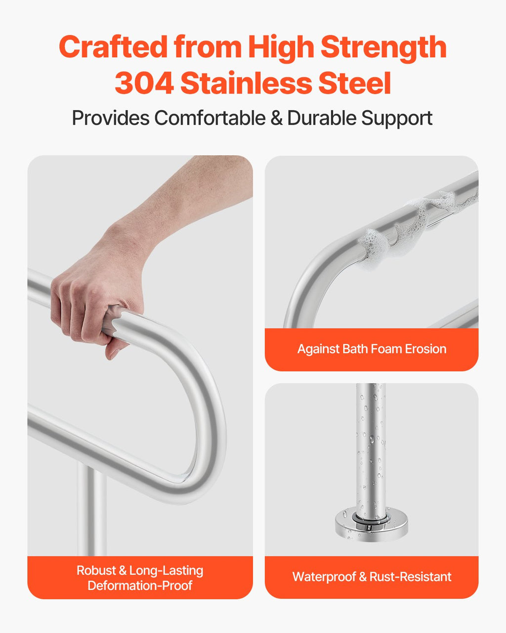 VEVOR Toilet Safety Rail, 80 cm U-Shaped Handicap Grab Bar, 304 Stainless Steel Senior Safety Pole, Toilet Grab Bars with Anti-Slip Handle, 136 kg Load Capacity Security Handrail with Support Leg