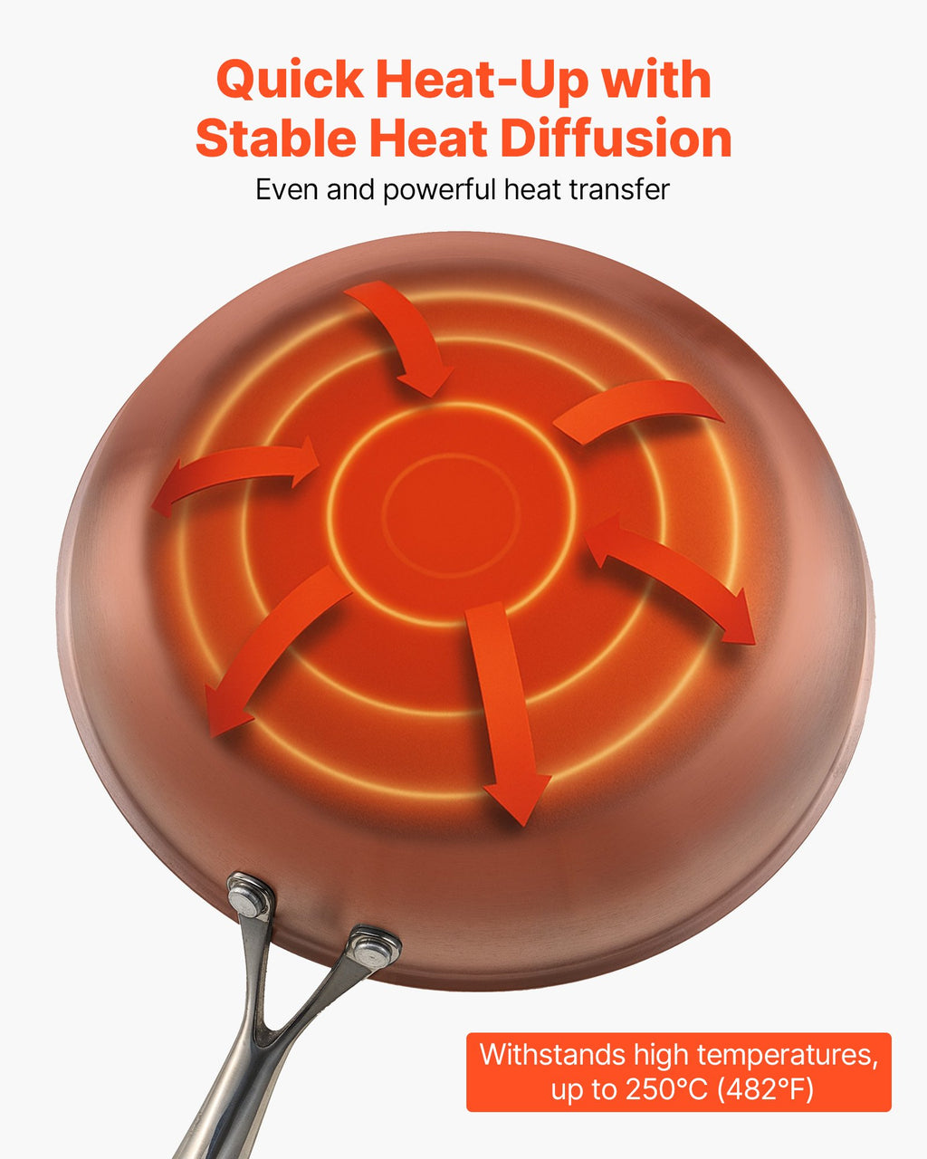VEVOR Tri-Ply Stainless Steel Frying Pan, 3 Piece 240, 280, 320 mm , Cooking Skillet with Heat-Resistant Handle, Chef's Kitchen Cookware, Oven, Gas, Electric, Induction, Dishwasher Compatible, Silver