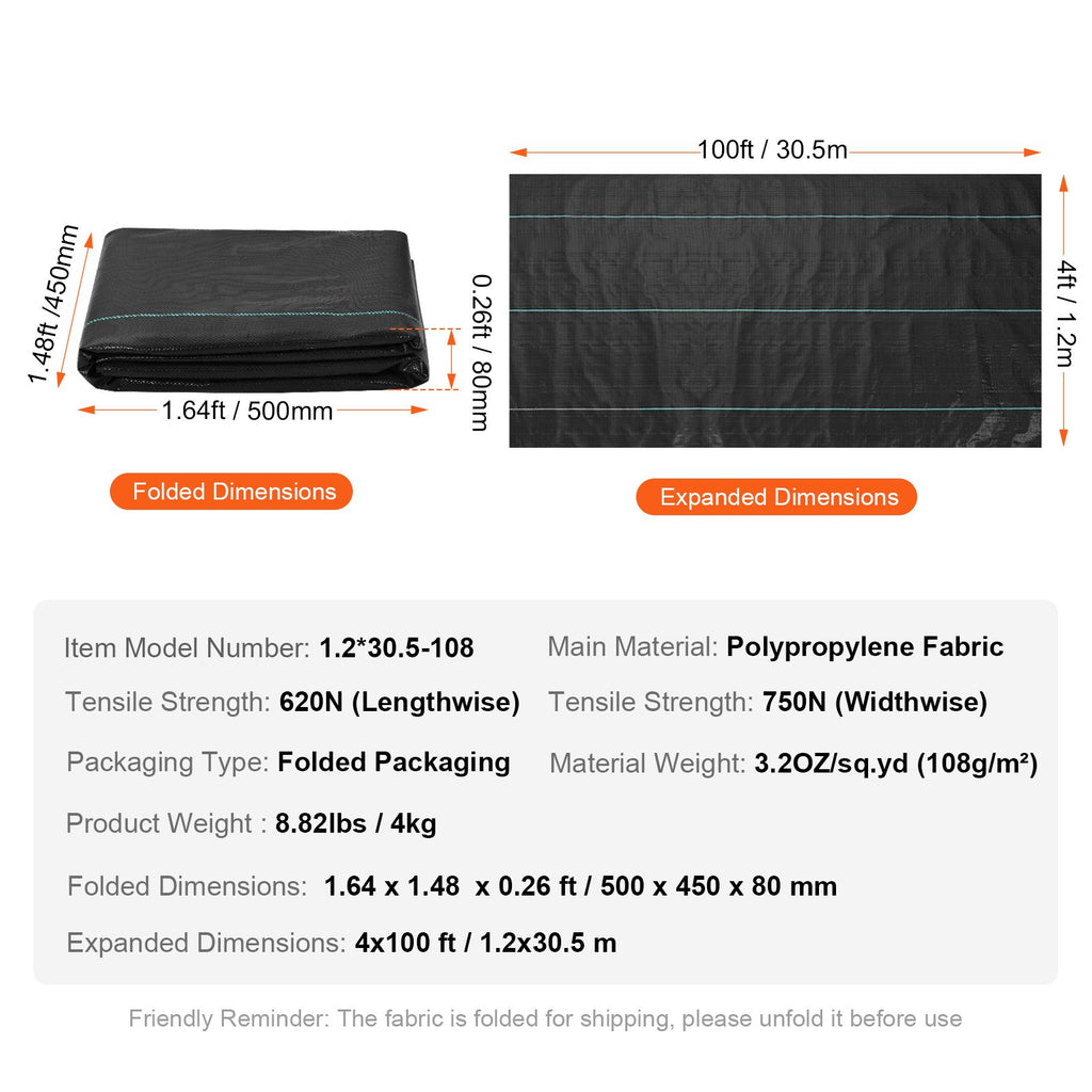 VEVOR Weed Barrier Landscape Fabric, 4*100FT Heavy Duty Garden Weed Fabric, Woven PP Weed Control Fabric, Driveway Fabric, Geotextile Fabric for Landscaping, Ground Cover, Weed Blocker Weed Mat, Black